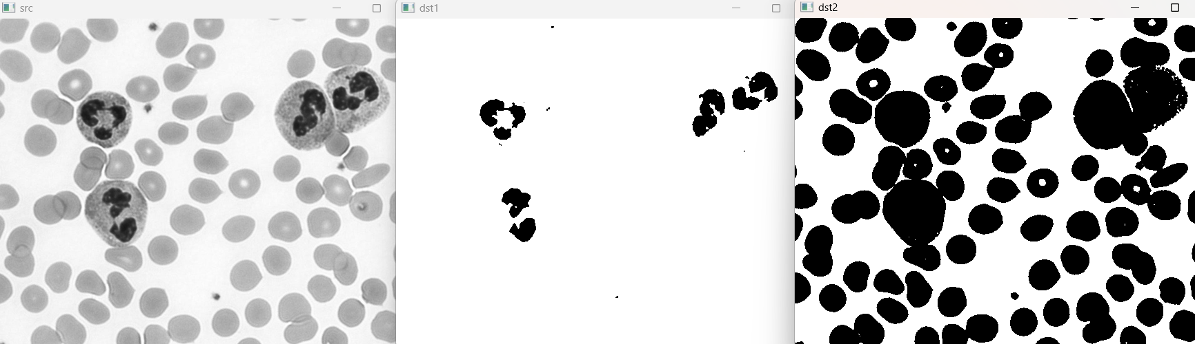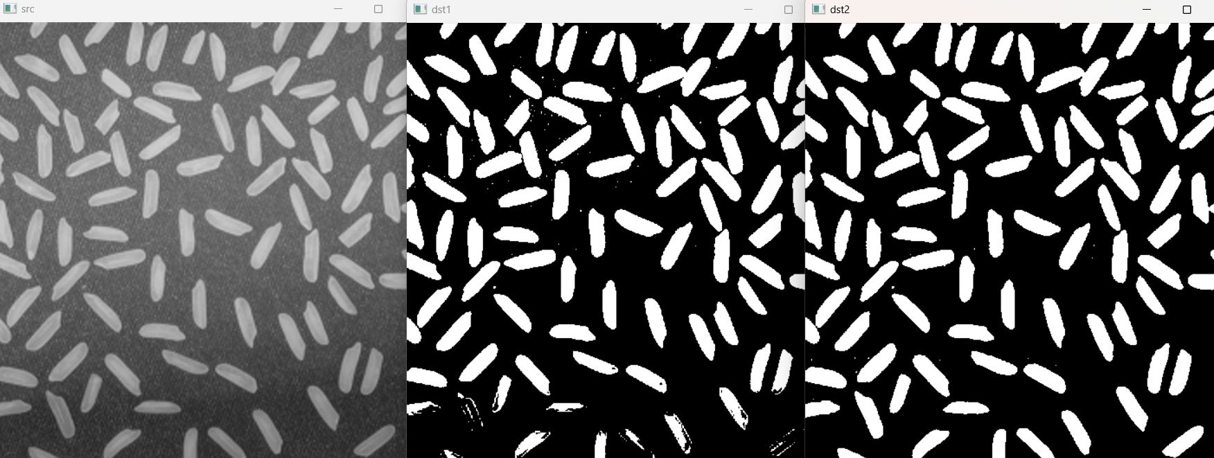 th, dst = cv2.threshold(src, 0, 255, cv2.THRESH_BINARY | cv2.THRESH_OTSU)