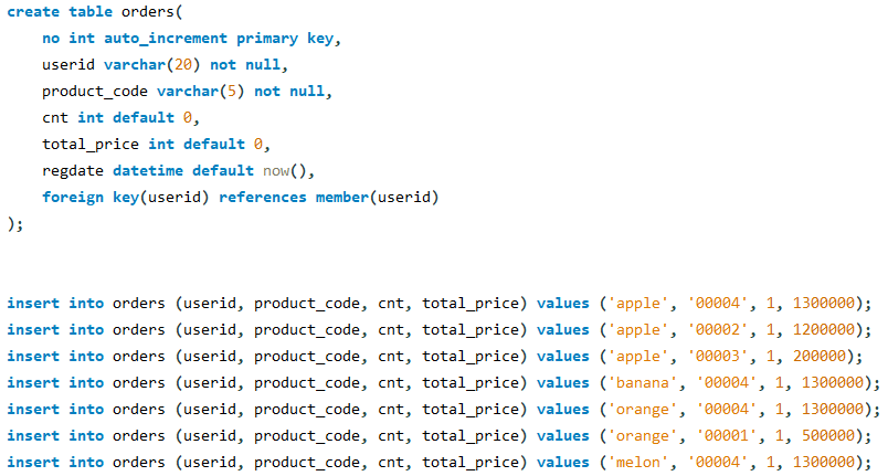 -- apple 데이터베이스에 모든 권한을 가진 사용자 'orange'를 생성