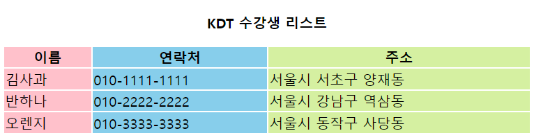 <td>서울시 동작구 사당동</td> <!-- css문법3 적용-->