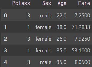feature = ['Pclass', 'Sex', 'Age', 'Fare'] # 독립변수