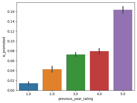 sns.barplot(x = 'previous_year_rating', y = 'is_promoted', data = hr_df)