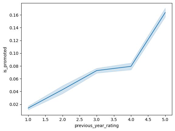 sns.lineplot(x = 'previous_year_rating', y = 'is_promoted', data = hr_df)