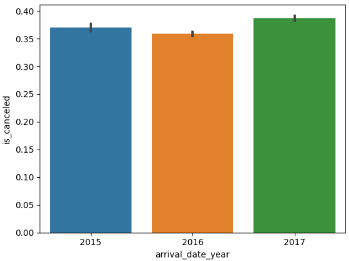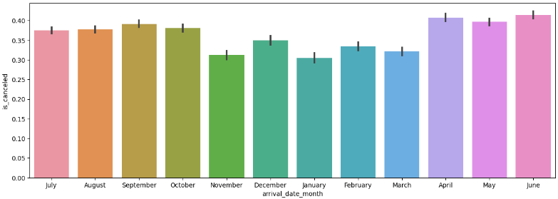 월별 취소율은 월마다 차이가 있어보이지만, 월이 순서대로 정돈되지 않아 데이터를 깔끔하게 보기가 어렵습니다.