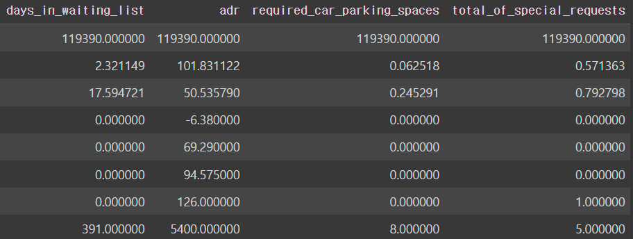 - total_of_special_requests: 특별한 별도의 요청사항이 있는지