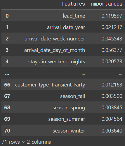 proba1[0] // array([1., 0.]) >> 취소할 확률이 없다고 예측함