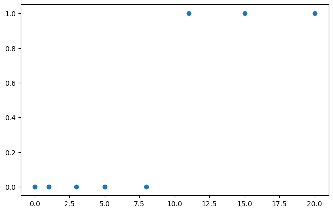 x_train = torch.FloatTensor([[0], [1], [3], [5], [8], [11], [15], [20]])